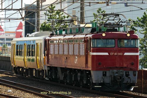 本日は午前中に掲題など。台風被害により再設定となった久留里線キハ郡山入場配給。 久留里線キハE130系KY入場配給配8380レ: EF81 140(1) + キハE130-110郡山入場配給前の前座。 武蔵野線しもうさ号903E : 205系ケヨM19編成8車配給列車通過後にケヨ区乗務…